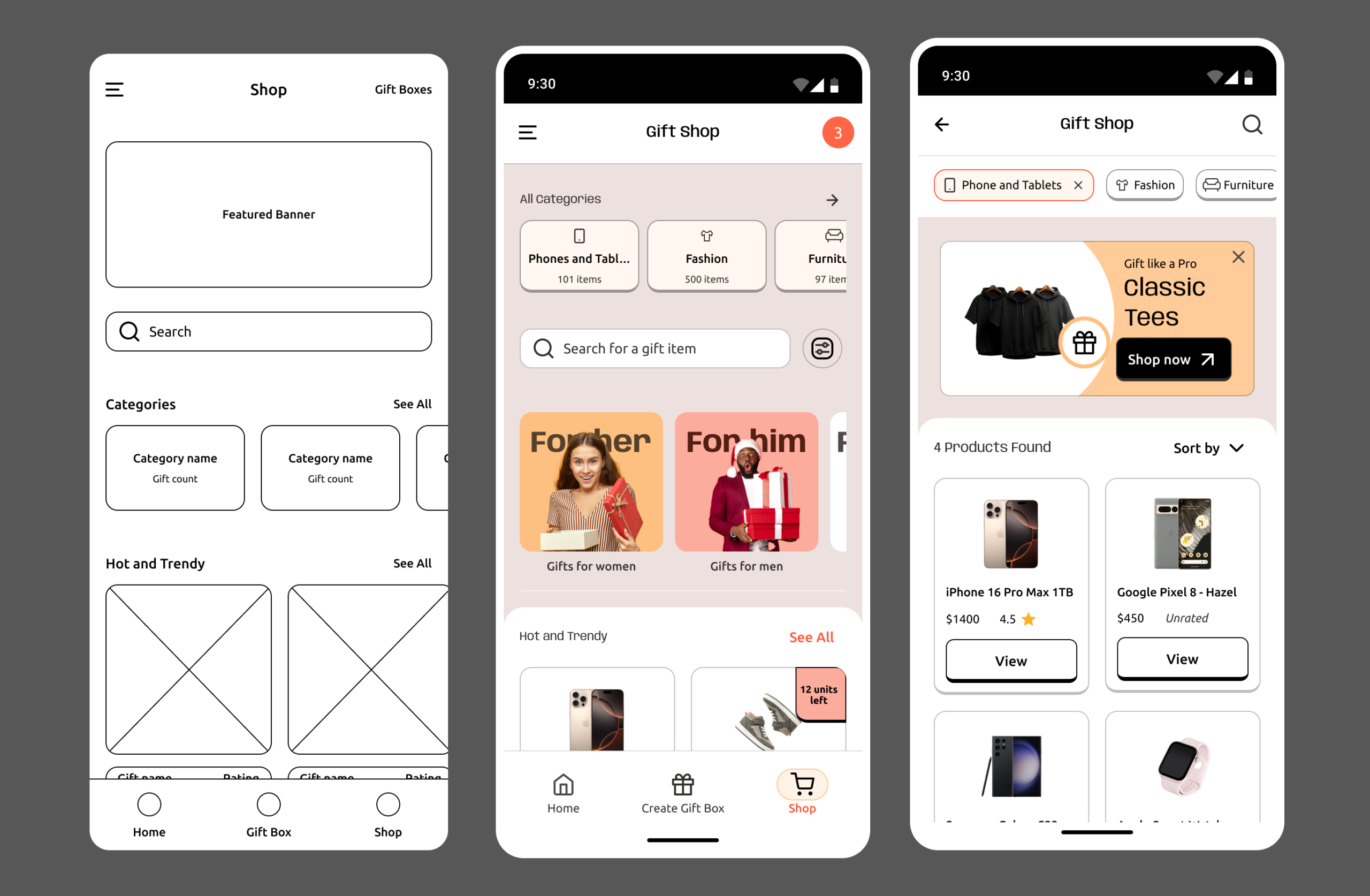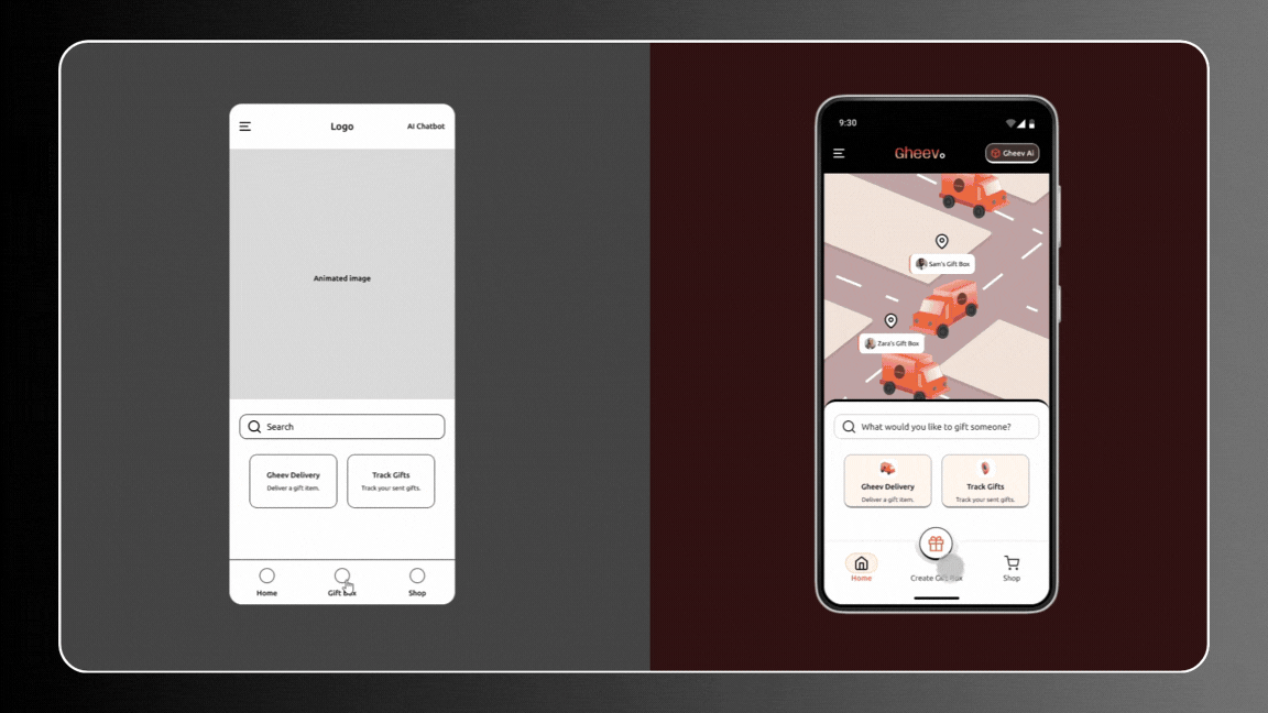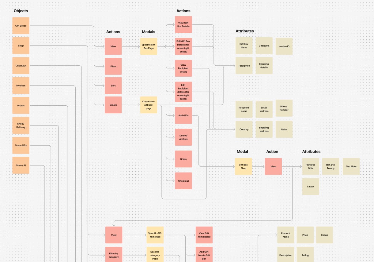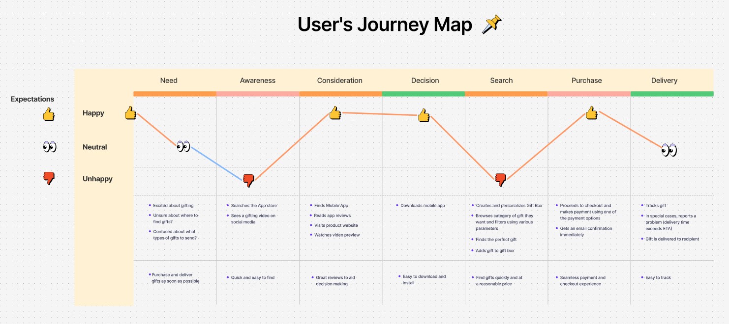 With this new insight, I mapped out the typical gifting journey of people who manually sent their packages through logistics companies. I also did the same for people who used an app to try to make the process easier: from the point of selecting items to pickup and delivery.